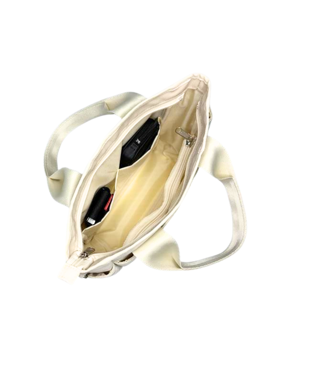 外側に4つ、内側に5つ(うち1つはジッパー付き)の合計9つのポケットを備え、スマートフォン、財布、鍵、エコバッグなどの小物をすっきり整理。
