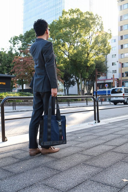 ・PCに書類など日常の仕事用品をスッキリ納めることの出来るトート。持ち手は肩掛け対応です。