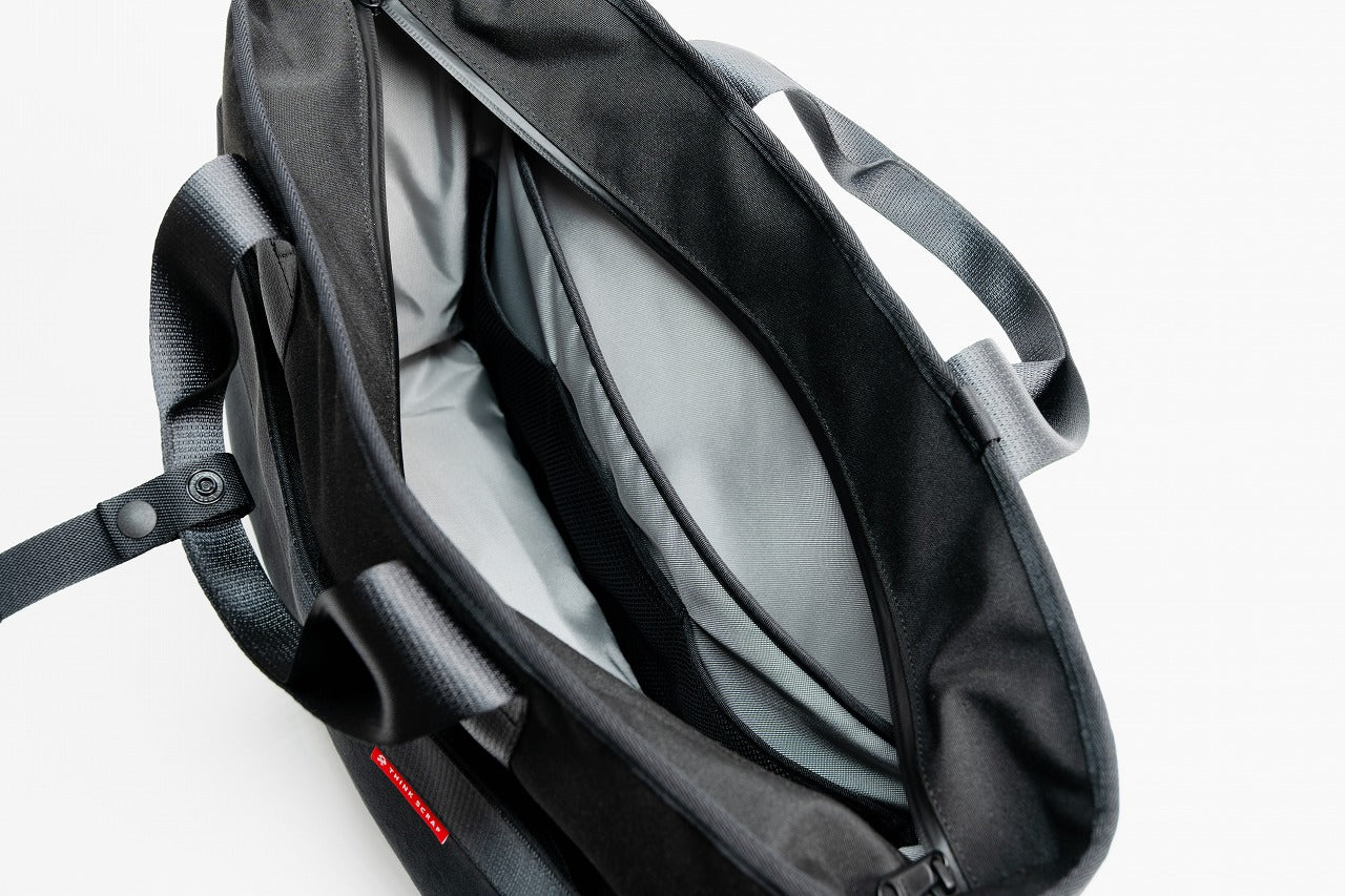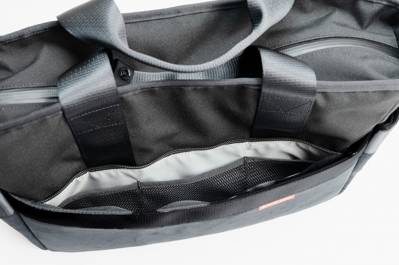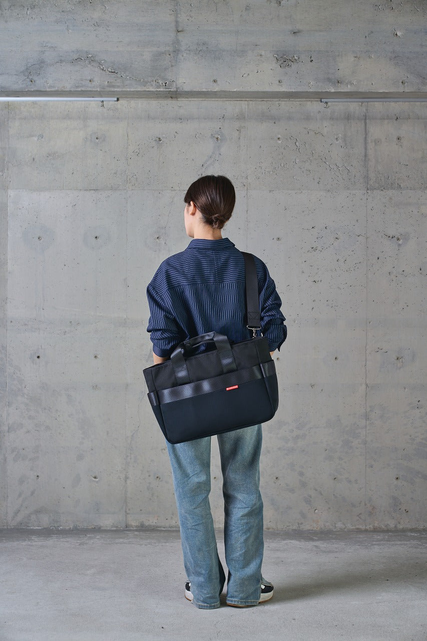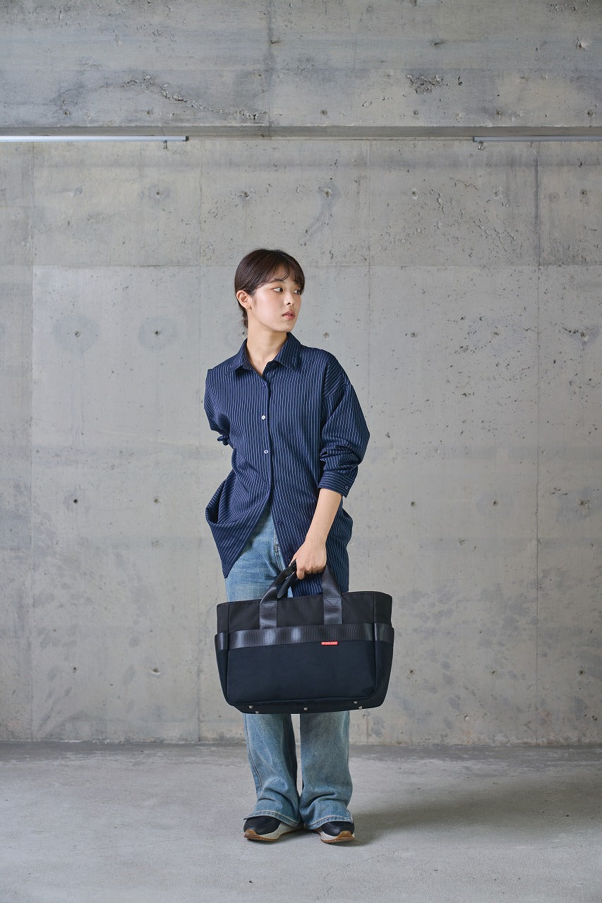 合皮とテント生地の端材に、シートベルトならではの“しなやかな強さ”をプラス。通勤・買い物・休日のお出かけまで、荷物の多い日こそ頼れるサイズ感です。A4書類やノートPC、ボトル、ポーチ、折りたたみ傘、軽い羽織までをざくざくイン。入れた量に関わらず、フォルムが崩れにくく見た目はいつもスマート。