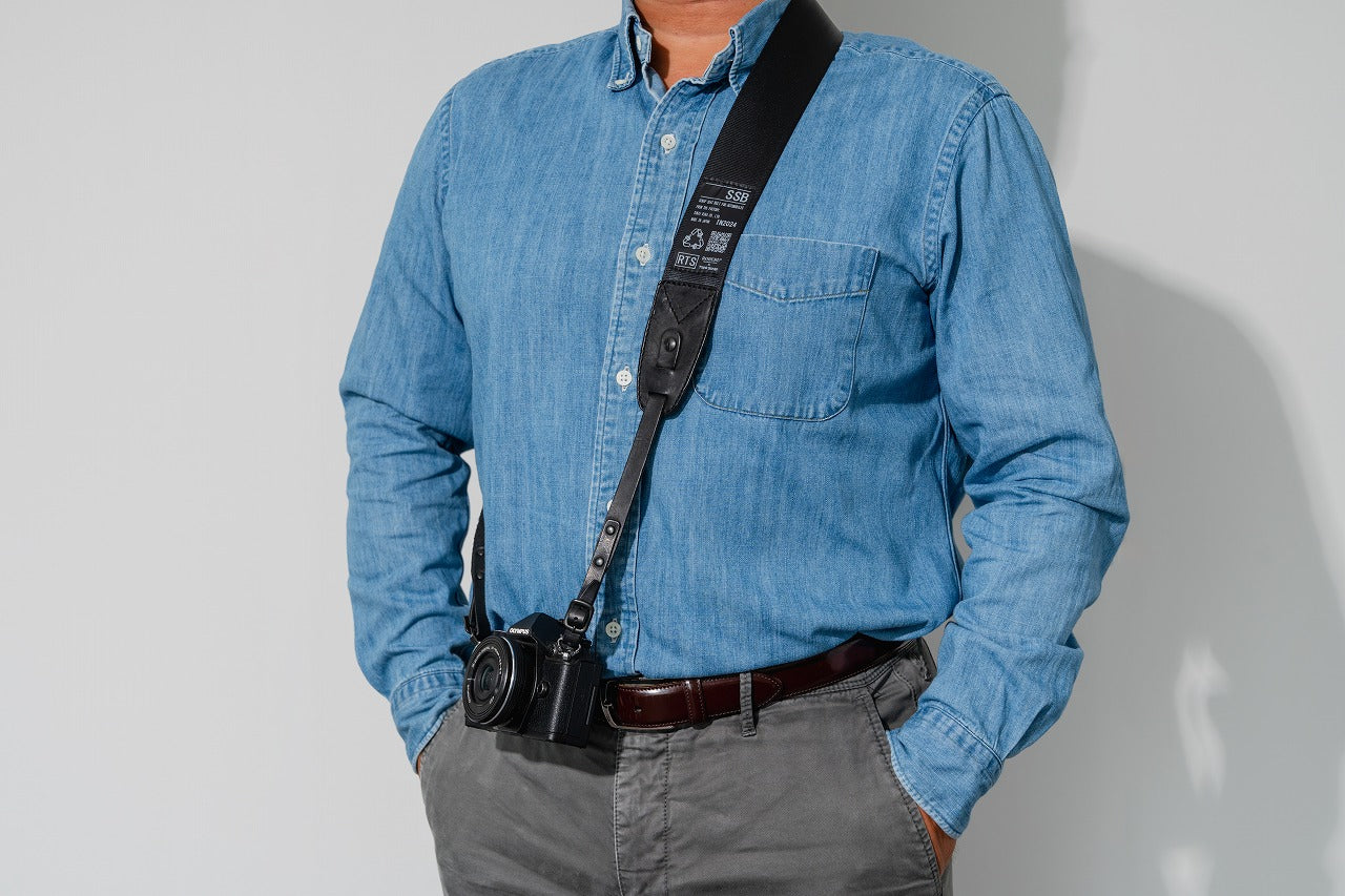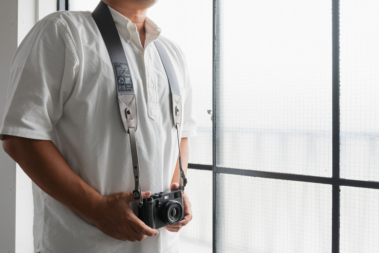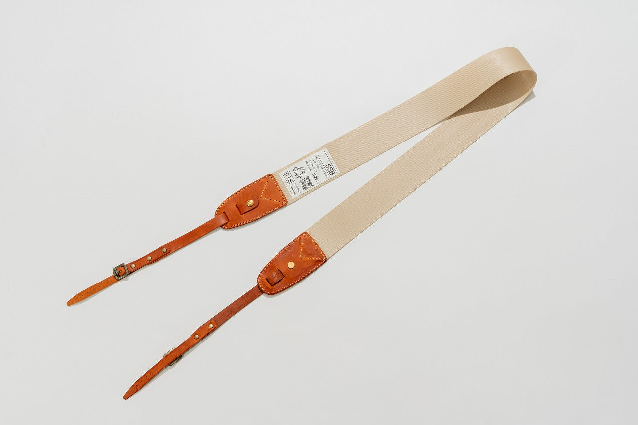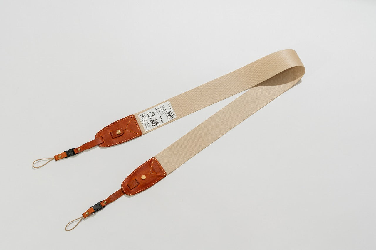 このカメラストラップは、クラフトマンシップに定評のあるレザーファクトリー「ROBERU」とのコラボレーションから生まれました。ROBERUが手がける上質なレザー製品と、Think Scrapが再生する自動車用シートベルト。その出会いが、しなやかさと耐久性を兼ね備えた新しいカメラストラップを実現しました。