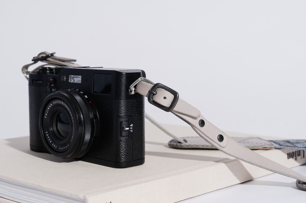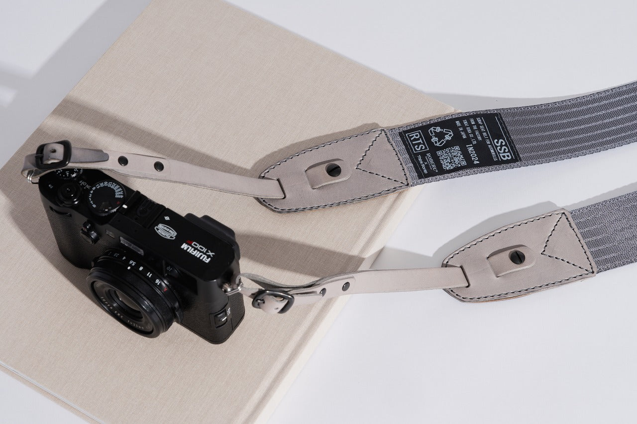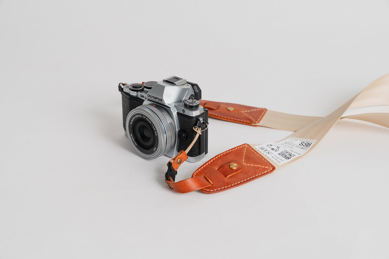このストラップは、ほぼすべてのカメラに対応可能。接続部分は、レザーベルトタイプとワックスコードタイプの2種類から選べます。あなたのカメラスタイルに合わせて、最適なデザインをお選びください。