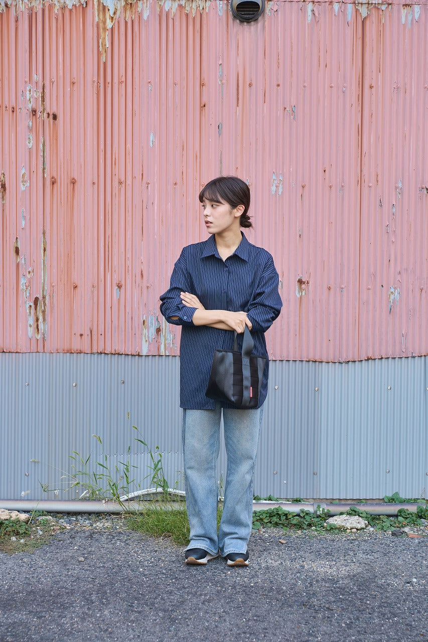 自動車クオリティのシートベルトのみで仕立てたトートバッグ。