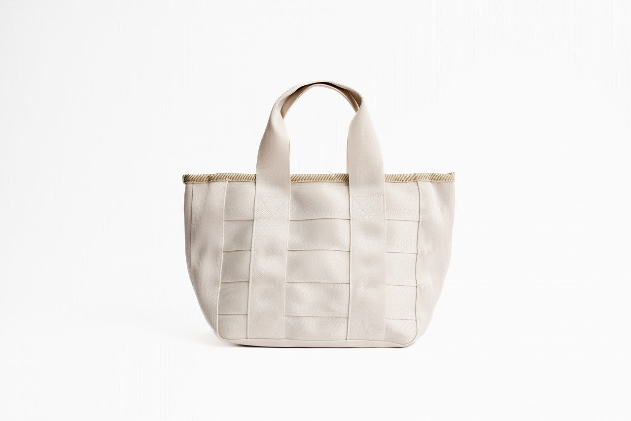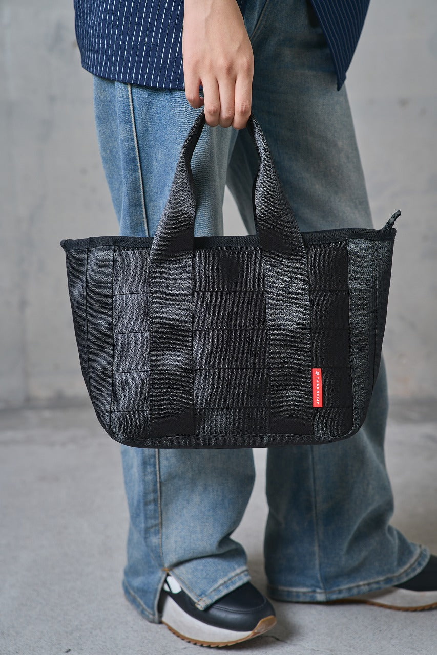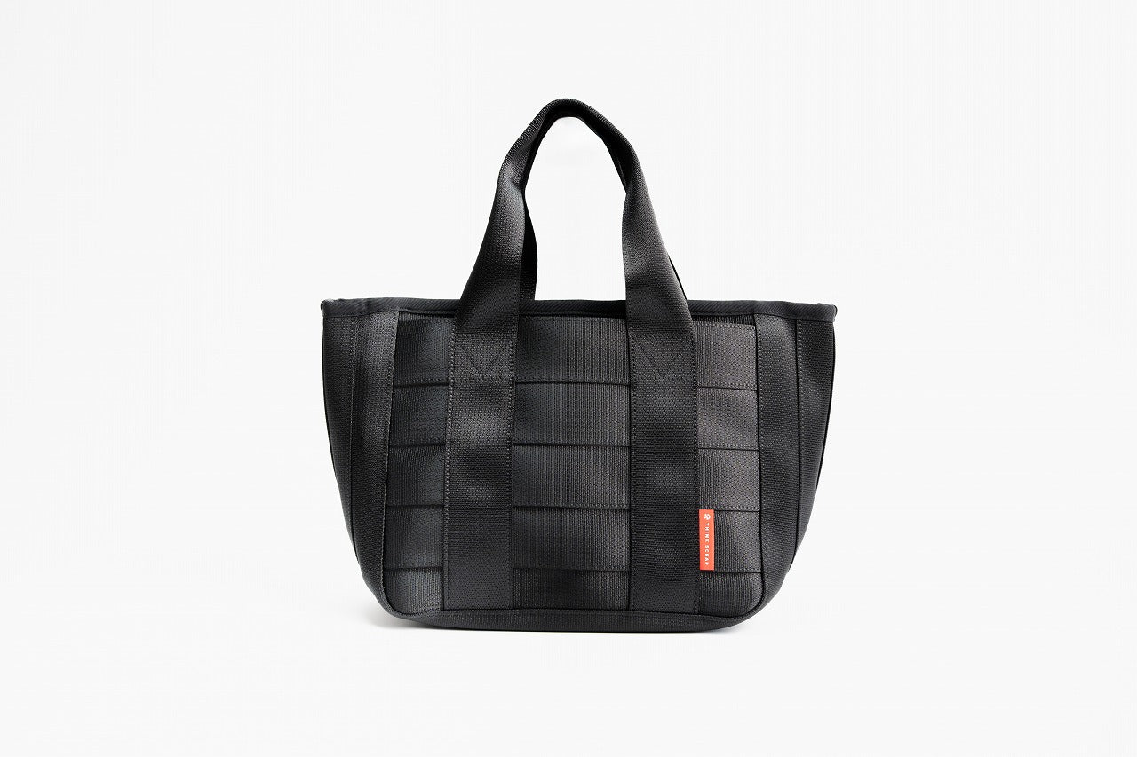 自動車クオリティのシートベルトのみで仕立てたトートバッグ。