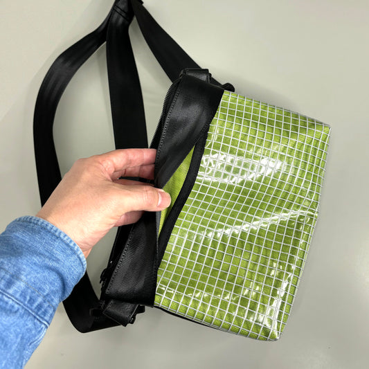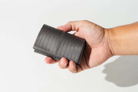 ご来館の記念に、自動車向けシートベルトで作られたアップサイクル製品をご覧ください。